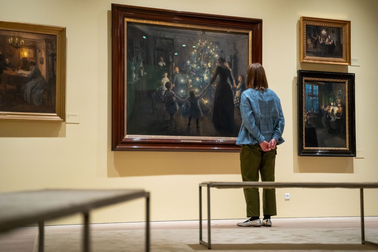 Lyset stråler fra et af Danmarks mest berømte juletræer på Skagens Museum. Det hænger i udstillingen Hos mig – skagensmaleren Viggo Johansen….